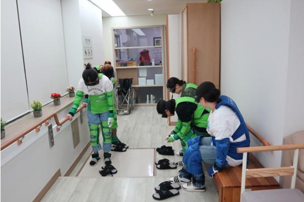 디지털 봉사단 장학생들은 재단 내 회의실에서 발대식을 마친 뒤 노인이 된 이후의 일상을 가상으로 체험할 수 있는 ‘노인생애체험센터’로 이동해 노인 생애 체험 프로그램에 참여했다. 이를 통해 교육 대상 어르신에 대한 공감과 이해의 폭을 넓히는 시간을 가졌다.