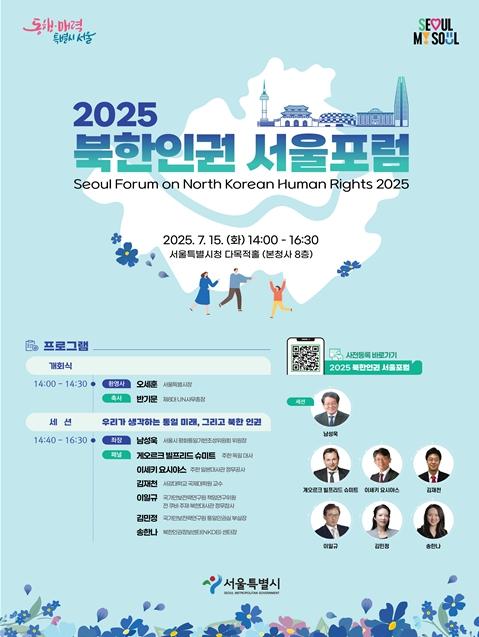 먼저 '우리가 생각하는 통일 미래, 그리고 북한인권'을 주제로 15일 오후 2시 서울시청(8층 다목적홀)에서 열릴 ‘2025 북한인권 서울포럼’에는 반기문 제8대 UN사무총장과 국내·외 북한인권 및 통일 관련 전문가가 참석한다.