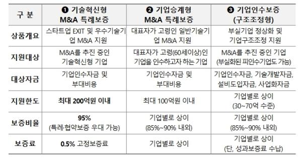 이에 중기부는 금년 1월부터 기술보증기금 내에 「인수합병(M&A)지원센터」를 설치하여 일반 인수합병(M&A) 지원은 물론, 자녀승계가 어려운 고령의 대표들에게 인수합병(M&A)을 통한 제3자 기업승계를 돕고 있다. 동 센터는 ▲인수합병(M&A) 거래정보망 운영, ▲중개지원, ▲인수합병(M&A) 파트너스 네트워크 구축, ▲인수합병(M&A) 보증, ▲기술보호(TTRS 등) 등 원활한 제3자 기업승계 서비스를 제공하고 있다.