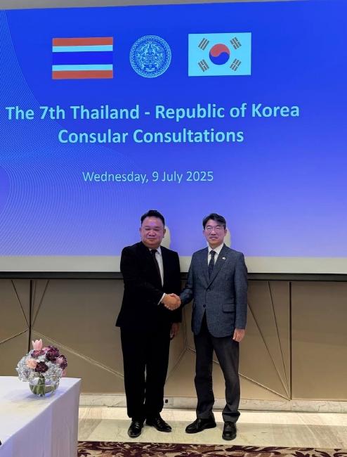 윤주석 영사안전국장은 7월 9일 오전 태국 방콕에서 뭉콘 쁘라툼깨우(Mungkorn Pratoomkaew) 태국 외교부 영사국장과 제7차 한-태국 영사협의회를 개최하고, ▴우리 국민들의 태국 출입국 및 체류 편익 증진, ▴태국 내 우리 국민 보호 등 양국 영사 현안 전반에 대해 폭넓게 논의했다.