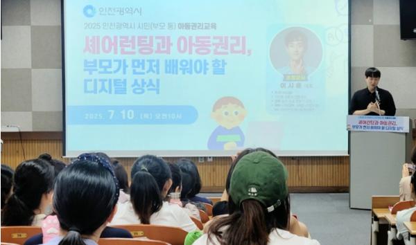 인천광역시는 7월 10일 인천광역시교육청 평생학습관에서 시민과 학부모를 대상으로 ‘셰어런팅과 아동권리, 부모가 먼저 배워야 할 디지털 상식’을 주제로 한 아동권리 교육을 성공적으로 마무리했다고 밝혔다.
