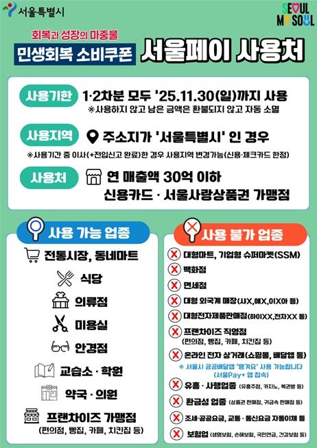 이번 추가된 가맹점을 대상으로 관할 자치구 주민센터를 통해 민생회복 소비쿠폰의 결제 방법 및 서울페이 가맹점 모드 신청 방법 등을 안내할 계획이다.