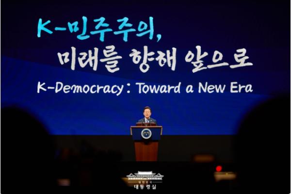 여전히 민주주의의 힘을, 주권자의 저력을 의심하는 사람들이 있다면 고개를 들어 동방의 나라 대한민국을 바라보라, K-민주주의가 열어갈 희망의 행진을 지켜보라고 말씀드리고 싶습니다.