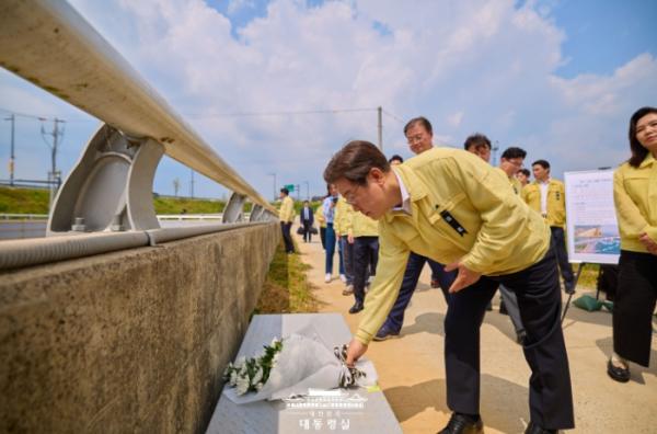 이 대통령은 사고 이후 차량 진입 차단 시설과 비상 대피 시설, 차수벽과 핸드레일 등이 설치된 지하차도 일대를 살펴보면서 "재난 대책 시설물 개선과 재정 지원만큼이나 작동 점검이 중요하다"고 강조했다.
