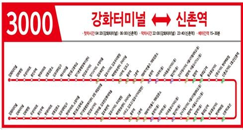 3000번 버스는 강화터미널에서 마곡역, 합정역, 신촌역 등 서울 지역으로 연결되는 유일 버스노선으로 그동안 강화군민의 중요한 교통수단 역할을 해왔다.