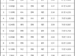 한편, 시청률 3%를 넘긴 경기는 총 7경기로 KIA-한화 간의 경기가 5차례, 롯데-한화간의 경기가 2차례 있었다. 2024 시즌 전반기에는 시청률 3%를 넘긴 경기가 전무했다. 시청률 2%를 넘긴 경기는 총 47경기로 지난 시즌 전반기의 26경기에 비해 크게 늘어났다.