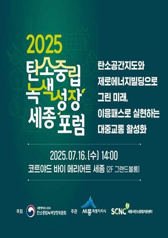 대통령직속 2025 탄소중립녹색성장위원회(공동위원장: 김민석 국무총리, 한화진 민간위원장)와 세종시는 7월 16일에 세종시 에너지 자립 스마트시티 구축 전략 논의를 위한 포럼을 개최했다.