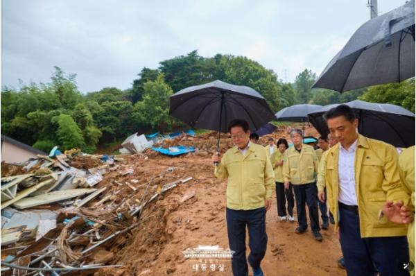 또한 주민들이 빗속에서 급히 대피하느라 신발과 속옷 등 물품이 부족하다는 이야기를 전해 듣고, "국민 눈높이에서 실질적인 피해 복구와 구호 지원이 이뤄져야 한다"고 당부했다.