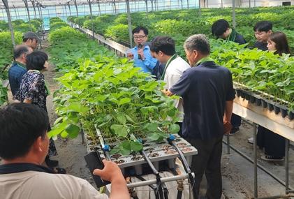 이날 교육은 딸기전문가 김종필 컨설턴트를 초빙해 딸기 모종 유인방법과 삽목방법, 모종을 키우는 육묘시설과 양분 및 온도 조절, 물주기, 육묘기 병해충 관리 등 고품질 우량 딸기 모종 생산을 위한 종합적인 재배 기술을 교육했다.
