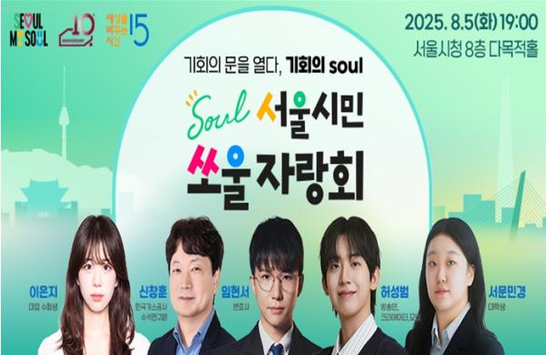 올해 첫 번째로 열리는 '서울시민 쏘울자랑회'는 8월 5일 오후 7시 서울시청 8층 다목적홀에서 진행된다. 현장 강연은 300여 명의 시민 관객과 함께 진행되며, 서울시·세바시 유튜브 채널을 통해 온라인으로도 생중계된다.
