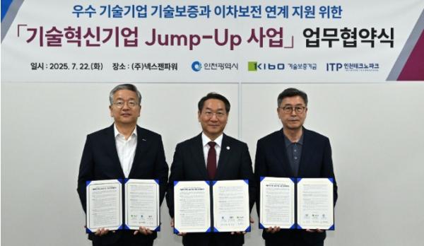 인천시는 7월 22일 남동구 고잔동에 위치한 ㈜넥스젠파워에서 기술보증기금, 인천테크노파크와 함께 기술기업 지원을 위한 ‘기술혁신기업 Jump-Up 사업’ 업무협약을 체결했다고 밝혔다.
