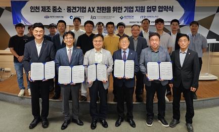 인천시는 7월 18일 한국산업단지관리공단 인천지역본부에서 한국기계연구원(KIMM), 한국건설생활환경시험연구원(KCL), 한국생산기술연구원(KITECH), 인천테크노파크와 함께 중소·중견 제조기업의 인공지능 전환(AI Transformation) 지원을 위한 업무협약(MOU)을 체결했다.