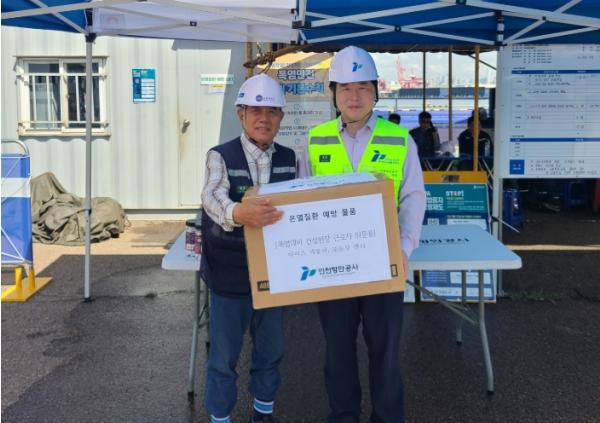 인천항만공사는 23일, 폭염 속 건설현장 근로자 온열 질환 예방을 위해 '인천신항 1-2단계 컨테이너부두 하부공 축조공사'를 비롯한 항만 건설현장 9곳을 방문해 근로자 위문과 안전점검을 실시했다고 밝혔다.