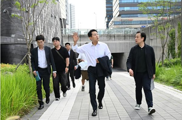 이어서 오 시장은 지하철을 타고 문정역으로 이동해 역사와 연계된 유휴공간에서 ‘운동공간’과, ‘도시정원’이 결합된 공간으로 탈바꿈될 스포츠가든 조성지를 살펴봤다.