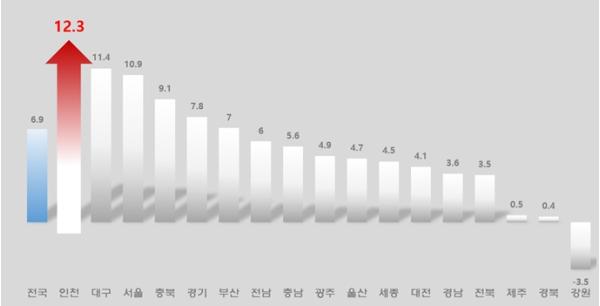 통계청이 7월에 발표한 인구동향에 따르면, 올해 1월부터 5월까지 인천시의 출생아 수는 총 6,868명으로 전년 동기 대비 1,278명이 증가해 12.3%의 높은 성장률을 기록했다. 이는 전국 평균 6.9%를 크게 상회하는 수치이며, 충북(11.4%)과 대구(10.9%)가 그 뒤를 이었다.