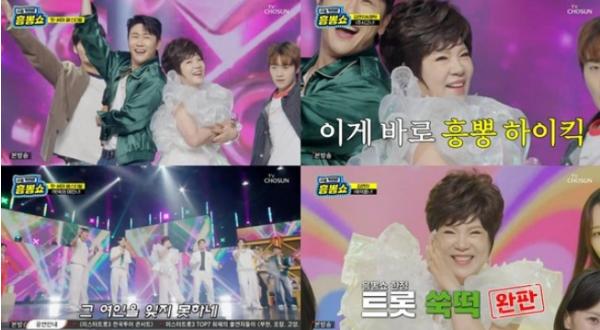 또 김연자는 영탁과 남다른 호흡을 자랑하며 훈훈한 선후배의 케미스트리를 뽐냈다. 김연자의 등장에 MC들은 "이렇게 나타날 줄 몰랐다"며 흥분한 모습을 보였다.