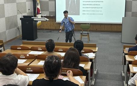 이번 교육은 김형수 장애인학생지원네트워크 사무총장이 강사로 나서 ‘장애인의 진로 결정 성찰과 패러다임의 변화’를 주제로 이야기했다.