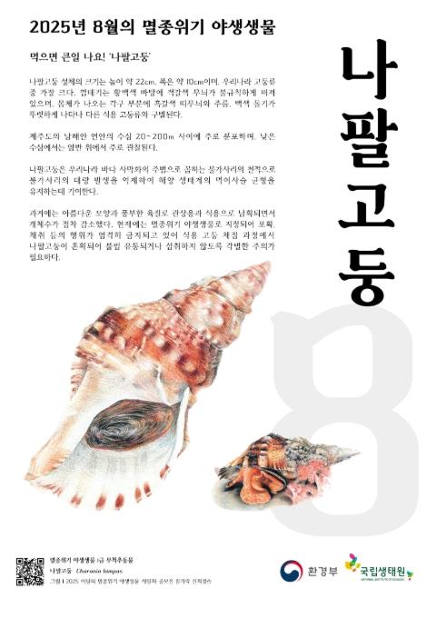 환경부는 8월 ‘이달의 멸종위기 야생생물’로 우리나라 연안에 서식하는 대형 연체동물인 ‘나팔고둥’을 선정했다고 밝혔다.