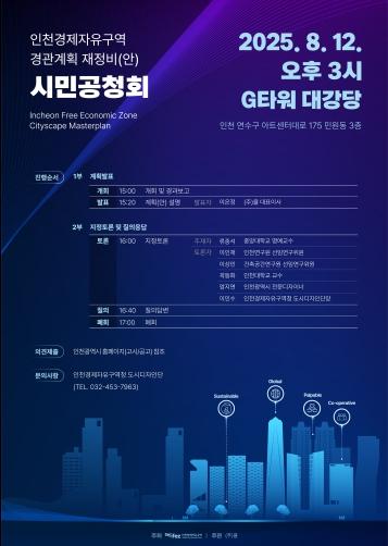 이번 공청회는 경관법 제11조 및 같은 법 시행령 제5조에 따라 인천경제자유구역 경관계획 재정비(안)에 대한 계획내용 설명과 주민, 관계 전문가 등의 다양한 의견을 청취하기 위해 마련된다.