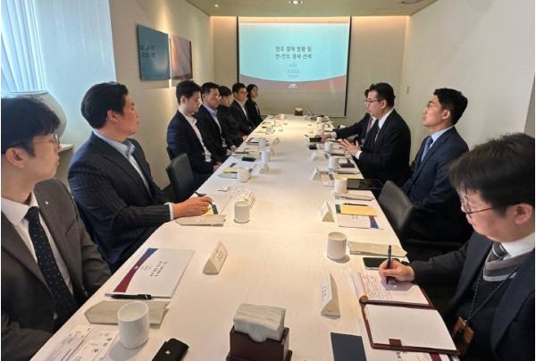 김 국장은 “인도는 세계 1위의 인구 대국이자 연 6% 이상 성장하고 있는 경제 대국으로서 우리 외교와 경제에 있어 매우 중요한 파트너”라고 했다. 또한 김 국장은 현재 500여 곳 이상의 우리 기업들이 인도에서 활발하게 활동하고 있으며, 우리 기업의 인도 진출은 올해 10주년을 맞이하는 ‘한-인도 특별 전략적 동반자 관계’의 핵심축을 구성하고 있다고 강조하면서, 우리 정부가 인도에 진출한 우리 기업들이 안정적으로 활동할 수 있도록 적극 지원해나가겠다고 했다.