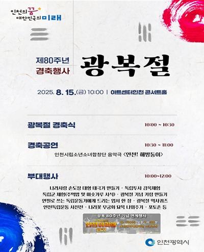 광복 80주년이라는 뜻깊은 해를 맞아 마련된 이번 행사는 인천의 독립운동 역사를 되새기고 시민의 자긍심을 높이기 위해 경축식, 경축공연, 부대행사, 연계행사 등 다채로운 프로그램으로 구성된다.