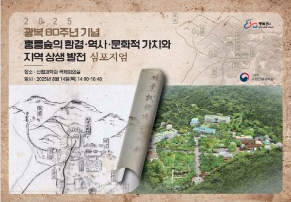 산림청 국립산림과학원(원장 김용관)은 14일, 광복 80주년을 맞아 ‘홍릉숲의 환경·역사·문화적 가치와 지역 상생 발전 심포지엄’을 개최한다고 밝혔다.