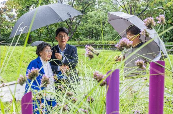 김병민 부시장과 이용수 할머니는 함께 ‘기억의 터’를 둘러보며 일본군 위안부 피해자들의 용기에 깊은 존경을 표하고, 그들의 아픔을 기억하며 추모하는 시간을 가졌다.