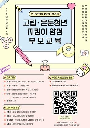 인천시사회서비스원 소속 인천시청년미래센터는 고립·은둔청년 지킴이 양성 부모교육 2기 참가자를 모집한다고 18일 밝혔다.