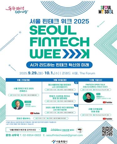 서울시가 글로벌 핀테크 행사인 ‘서울핀테크위크 2025’를 오는 9월 29일부터 10월 1일까지 여의도 콘래드 호텔 등에서 개최한다.