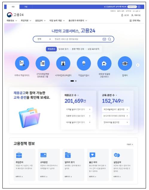 고용노동부와 한국고용정보원(원장 이창수)은 고용서비스 통합플랫폼 ‘고용24’ 개통 1주년을 맞아, 국민과 기업이 더 쉽고 편리하게 쓸 수 있도록 8월 20일 화면을 전면 개편했다.