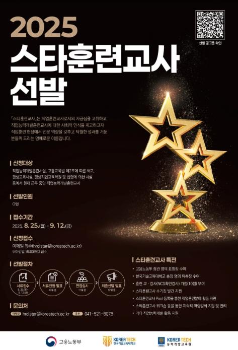 한국기술교육대학교, 25일부터 ‘2025년도 스타훈련교사’ 서류 접수 시작