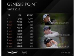 한편 시즌 종료 후 제네시스 포인트 1위로 ‘제네시스 대상’을 차지한 선수에게는 보너스 상금 2억 원과 함께 제네시스 차량, KPGA 투어 시드 5년과 PGA투어 큐스쿨 최종전 직행 자격, DP월드투어 시드 1년이 주어진다.