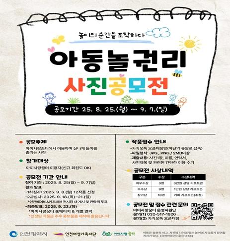 인천여성가족재단 아이사랑꿈터가 오는 9월 18일부터 21일까지 인천 연수구 송도컨벤시아 1홀에서 열리는 제31회 인천베이비&키즈페어에 참가해 아동의 놀 권리를 알리고 지역사회와 함께하는 홍보 캠페인을 진행한다.