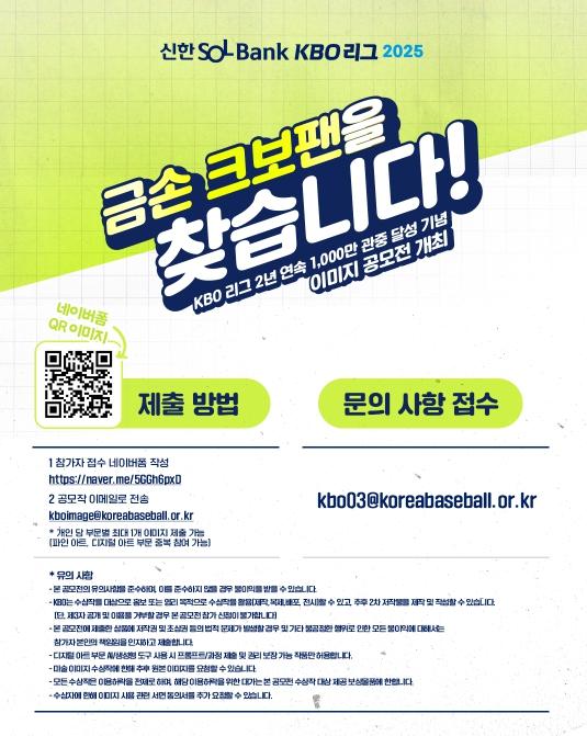 KBO가 2년 연속 1,000만 관중 달성을 기념해 이미지 공모전을 개최한다.