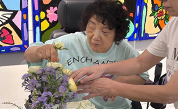 8월 말~9월 장애인지원주택 입주민과 지역 주민들이 함께하는 원예 원데이클래스를 마련했다. 장애인 4명, 비장애인 4명이 1:1로 짝을 이뤄 참여한다. 지난달 28일 두 번째 시간이 열렸다. 본격적인 강의에 들어가기 전 ‘올해 이루고 싶은 일과 격려해주기’로 소통을 시작했다. 지원주택 입주민 이유정(21) 씨가 “운전면허증을 따고 싶다”고 하자 신인경(37) 씨가 “겁내지 말라”고 용기를 준다. 장애인 박찬수(54) 씨는 “TV에 나오는 게 꿈”이라며 이선희의 ‘아름다운 강산’을 부르자 참석자들 모두 박수로 화답한다. 이날 수업은 식탁 등에 놓는 작은 장식물 ‘센터피스’ 만들기다. 서로 격려해주다보니 한 시간이 훌쩍 지났다.