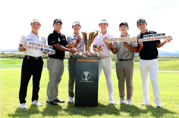 이날 포토콜에는 올 시즌 투어에 데뷔한 ‘루키’ 문동현(19.우리금융그룹)과 ‘디펜딩 챔피언’ 고군택(26.대보건설)을 비롯해 2025 시즌 유일한 다승자이자 현재 제네시스 포인트 1위 옥태훈(27.금강주택), ‘백송홀딩스-아시아드CC 부산오픈’ 챔피언 김홍택(32.DB손해보험), KPGA 투어 8승의 최진호(41.COWELL), 올 시즌 KPGA 투어와 KPGA 챔피언스투어를 병행하고 있는 ‘투어 23년차’ 황인춘(51.3H지압침대)까지 총 6명의 선수가 참석했다.