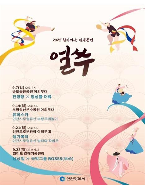 인천광역시는 시민들이 일상에서 전통공연을 쉽게 접할 수 있도록 ‘2025년 찾아가는 전통공연 얼쑤’를 하반기에도 지속 추진한다고 밝혔다.