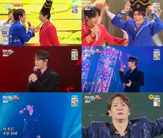 먼저 환희는 강문경과 함께 조영남의 ‘최진사댁 셋째 딸’을 듀엣으로 선보였다. 블루 슈트를 입고 등장한 그는 강문경과 환상의 콤비를 자랑, 유쾌하고 에너지 넘치는 무대를 완성했다.