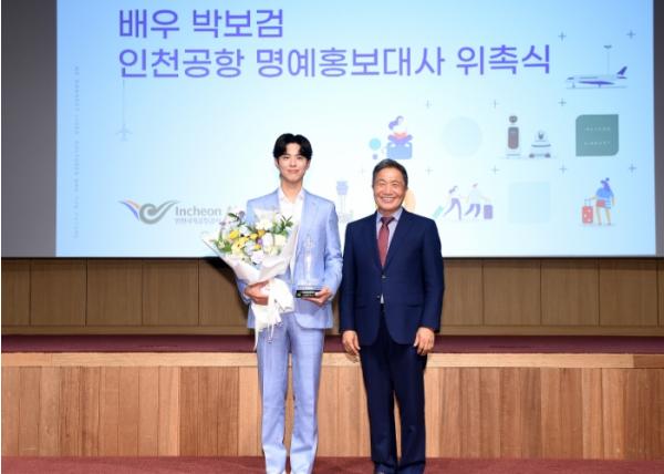이와 관련해 지난 15일 공사 대강당에서 명예홍보대사 신규 위촉행사가 열렸으며, 인천국제공항공사 이학재 사장이 박보검 배우에게 명예홍보대사 위촉패를 전달하고 공사 임직원들과의 기념촬영 등도 진행됐다.