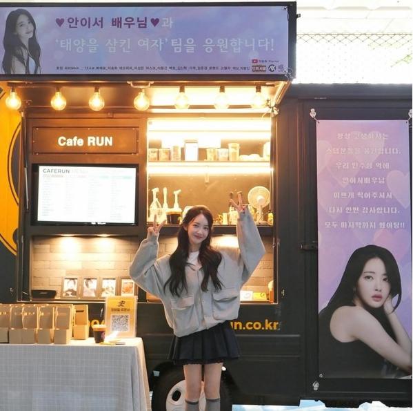 배우 안이서가 출연 중인 드라마 '태양을 삼킨 여자' 현장에서 커피차와 함께 자체발광 응원샷을 공개했다.