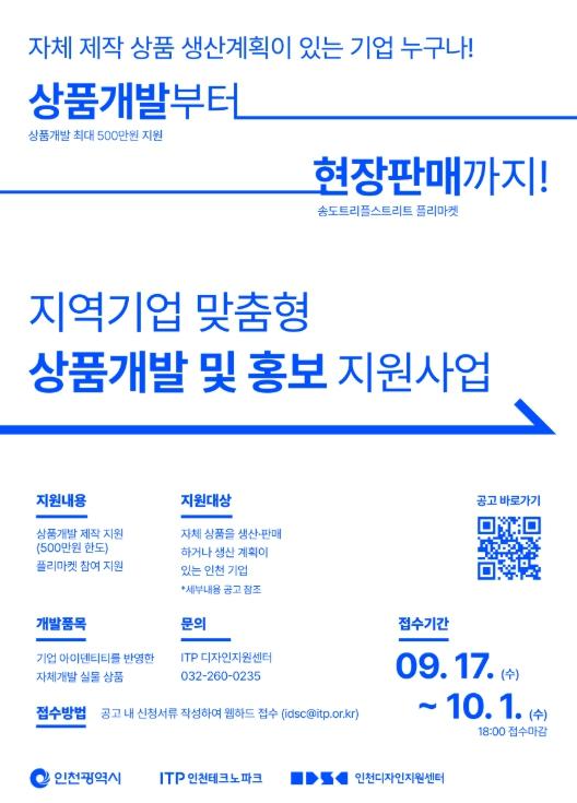 인천테크노파크(인천TP)는 오는 10월 1일까지 ‘2025년도 인천광역시 지역기업 맞춤형 상품개발 및 홍보 지원사업’에 참여할 중소기업을 모집한다.
