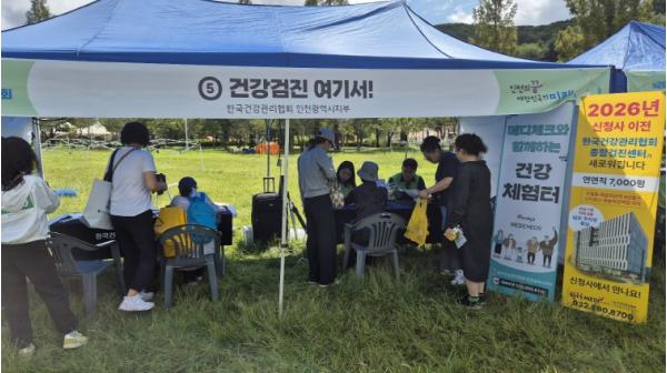 건협 인천은 행사장을 찾은 시민들을 대상으로 ▲뇌파맥파스트레스 ▲빈혈수치측정 등 다양한 건강체험서비스를 제공했으며, 2026 신청사 이전 홍보안내와 기념품 배부를 통해 참여자들의 관심을 이끌어내었다.