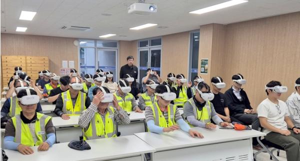 교육은 안전보건공단과의 협업으로 진행되어 1인 1기기 방식의 VR 체험을 진행됐다. 특히, ▲밀폐공간 질식 ▲사다리 추락 ▲고소작업대 사고 등 산업현장에서 발생할 수 있는 다양한 재해 상황을 참가자들이 가상의 공간에서 체험하며 위험 감지와 사고 대응 역량을 높였다.