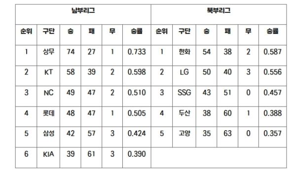 2025 KBO 퓨처스리그는 11개 팀이 남부(상무, KT, 삼성, NC, 롯데, KIA)와 북부(한화, SSG, LG, 두산, 고양(히어로즈)) 2개 리그로 진행됐다. 남부리그는 박치왕 감독이 이끄는 상무가 2012년부터 14년 연속 1위에 올랐다. 북부리그는 이대진 감독이 이끄는 한화가 2위 LG를 3게임차로 제치고 4년 연속 우승을 거머쥐었다.