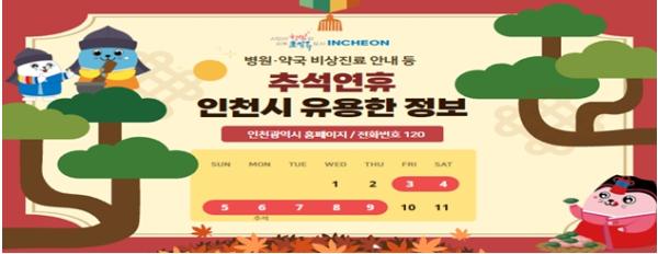 또한 시민들이 건강하게 명절을 즐길 수 있도록 연휴 기간에도 인하대병원을 포함한 26개 응급의료기관의 응급실을 24시간 운영한다. 지정 병·의원과 약국도 일정에 맞춰 문을 열어 비상 의료체계를 유지한다.