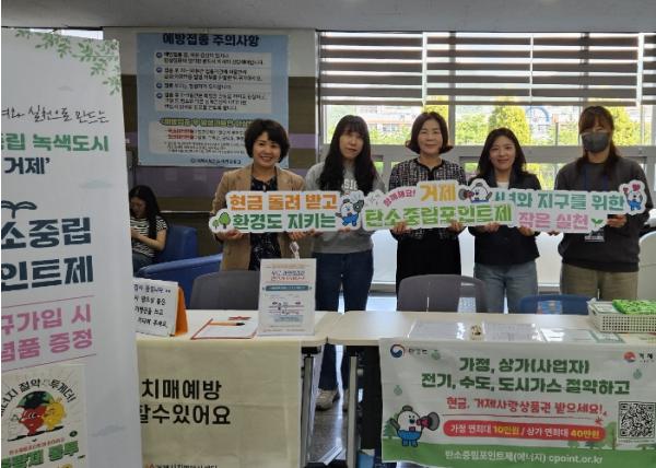 현장에서는 가정과 사무실에서 실천할 수 있는 구체적인 탄소중립 실천 방법을 안내하고, 탄소중립포인트제 가입 시 종량제봉투 등 기념품을 제공한다.
