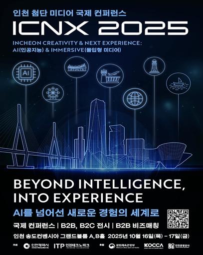 인천광역시는 오는 10월 16일부터 17일까지 송도컨벤시아 그랜드볼룸 A·B홀에서‘ICNX 2025(인천 첨단 미디어 국제 컨퍼런스)’를 개최한다고 밝혔다.