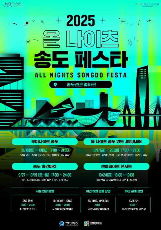 인천광역시와 인천관광공사는 오는 10월 17일부터 26일까지 송도센트럴파크 일대에서 '2025 올 나이츠 송도 페스타'를 개최한다고 밝혔다.