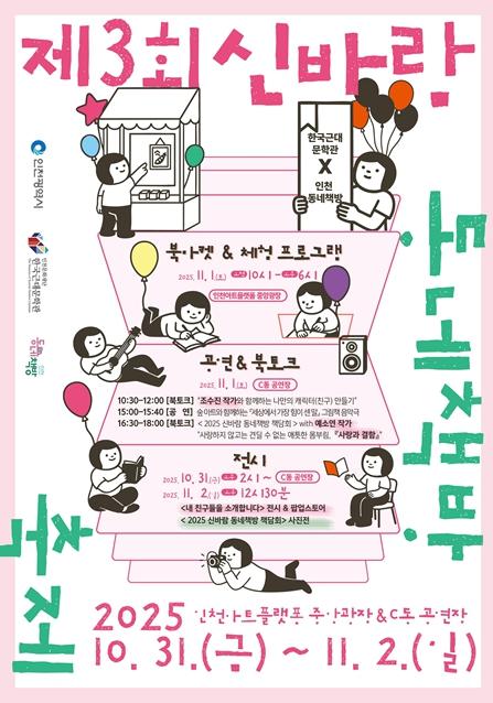 인천문화재단 한국근대문학관은 오는 10월 31일부터 11월 2일까지 인천아트플랫폼 중앙광장과 C동 공연장에서 〈2025 신바람 동네책방 축제〉를 개최한다.