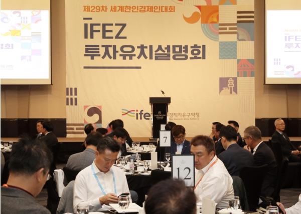 인천경제자유구역청은 28일 쉐라톤 그랜드 인천호텔에서 열린 제29차 세계한인경제인대회에서 ‘IFEZ 투자유치설명회’를 진행했다고 밝혔다.